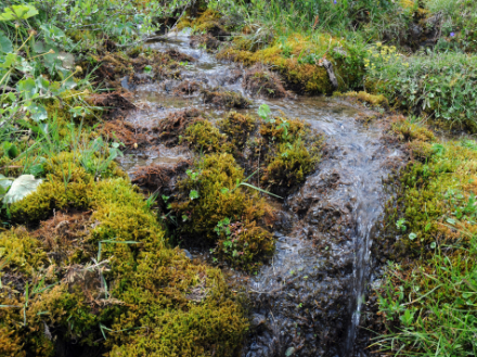 Moosgesellschaften dominieren die typische Vegetation in subalpinen und alpinen Quellen. Foto Daniel Küry